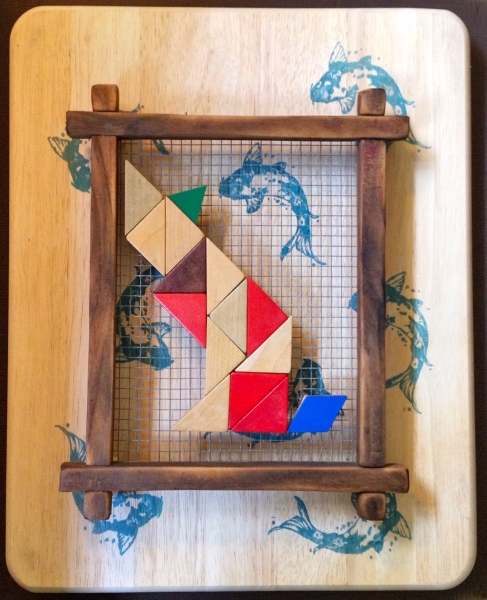 Wooden cutting board, wooden frame, wire mesh, tangram